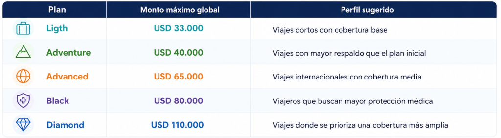 La elección del plan adecuado dependerá de factores como el país de destino, la cantidad de días de viaje, la edad del pasajero, el presupuesto disponible y las coberturas específicas que se quieran priorizar.